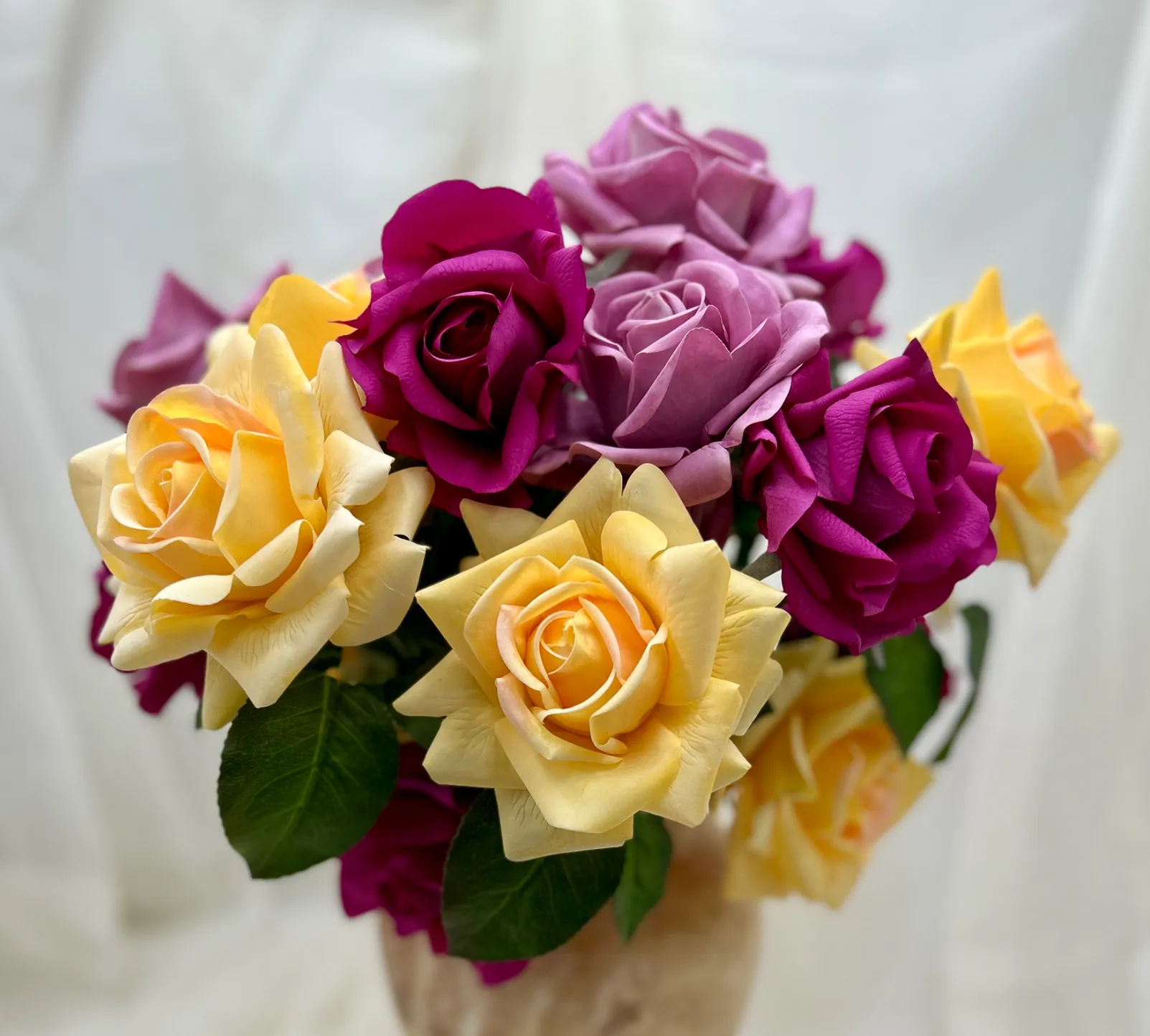Yellow, Fuchsia, and Mauve Roses