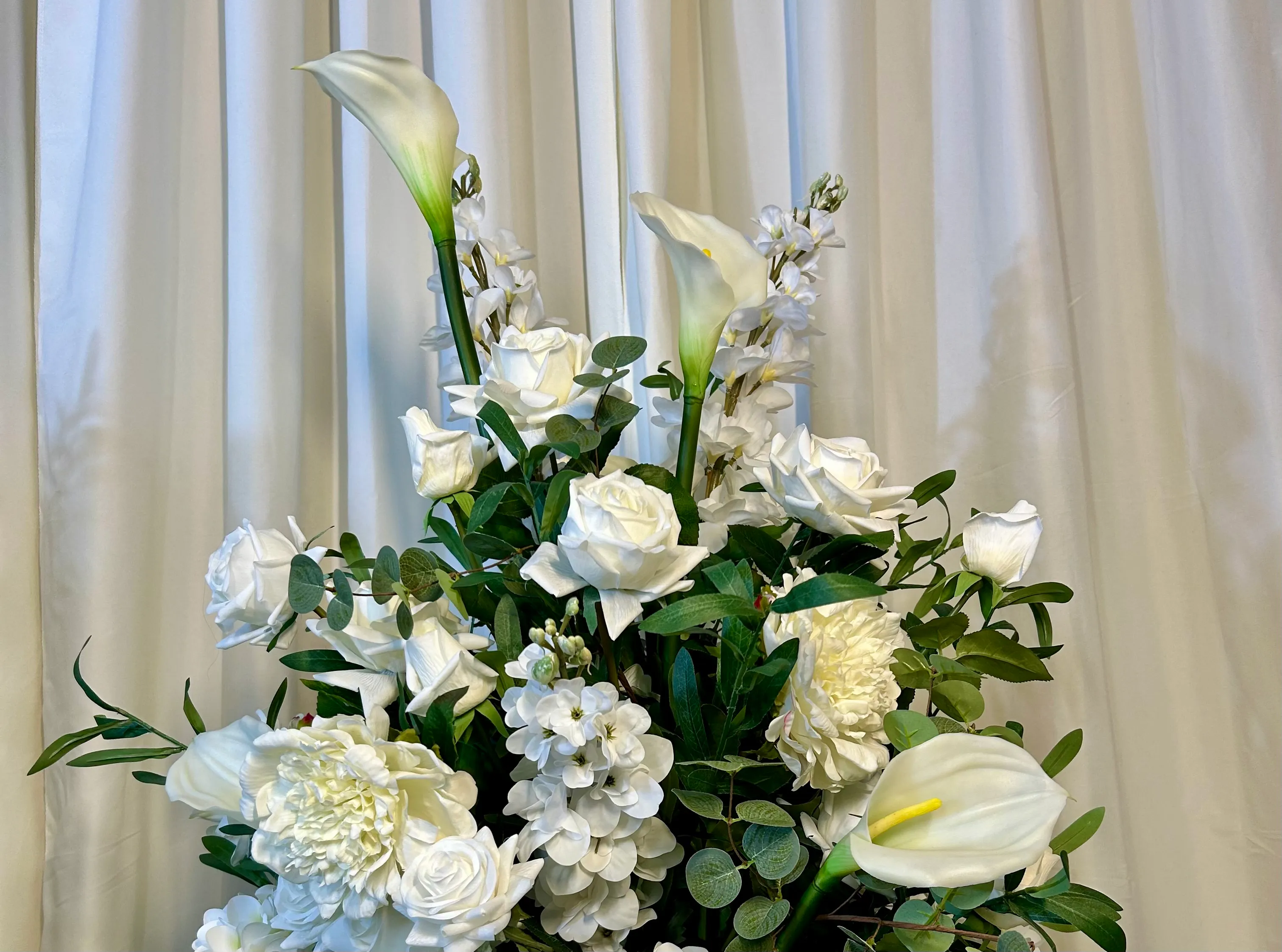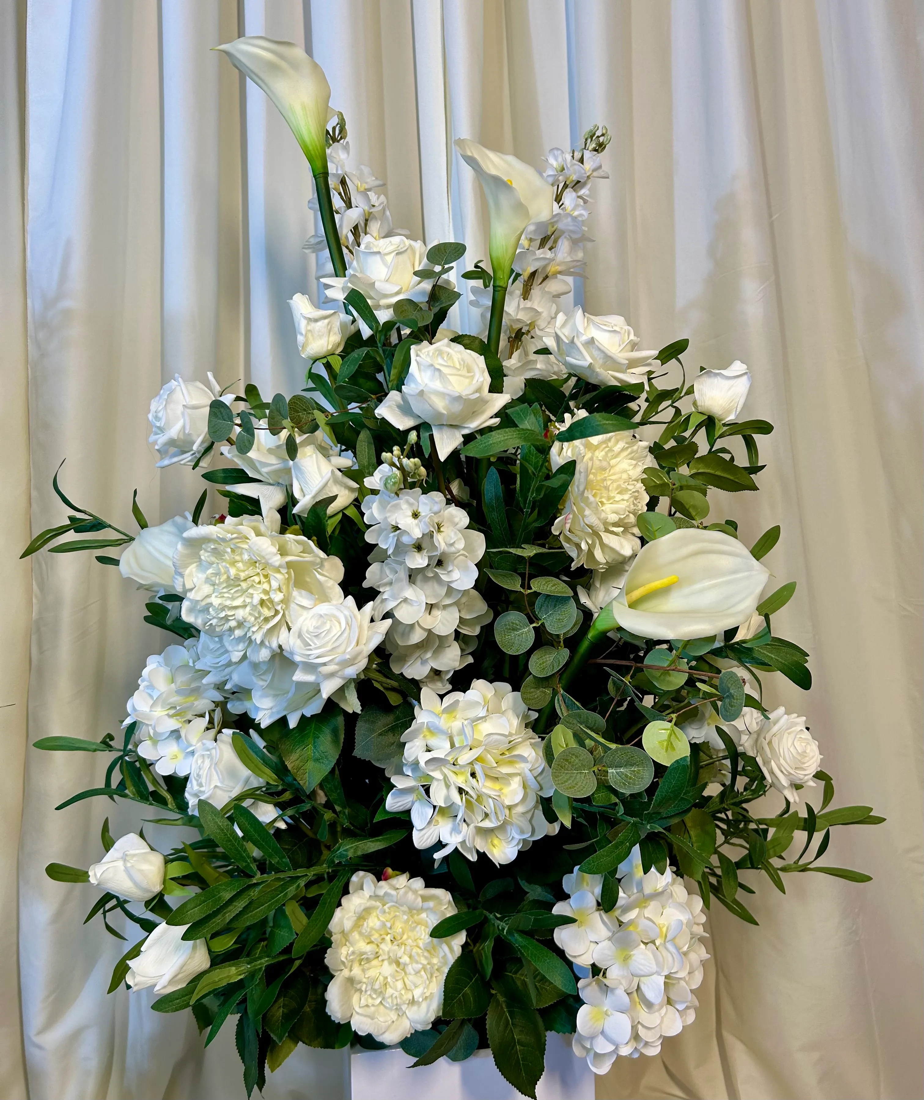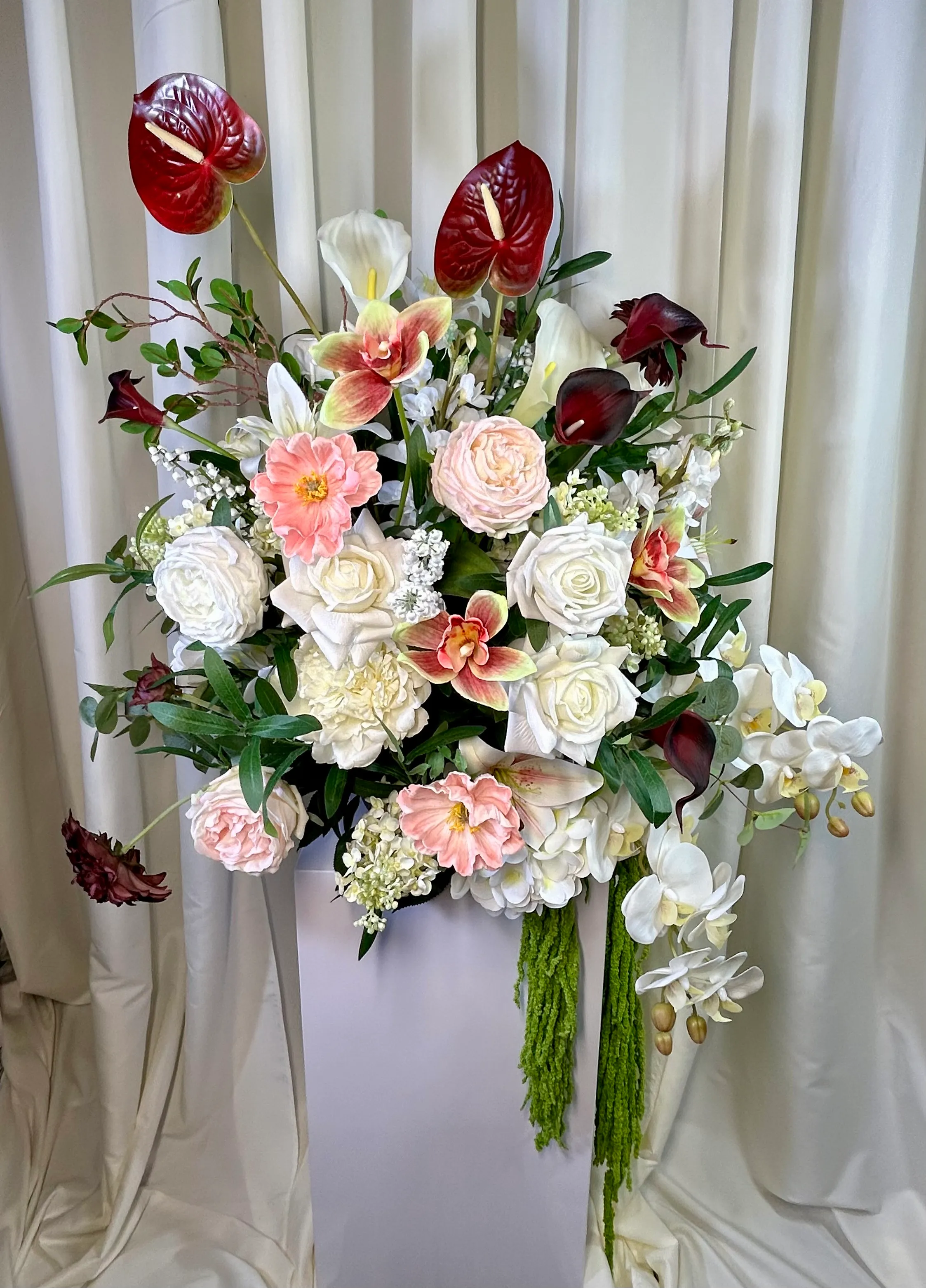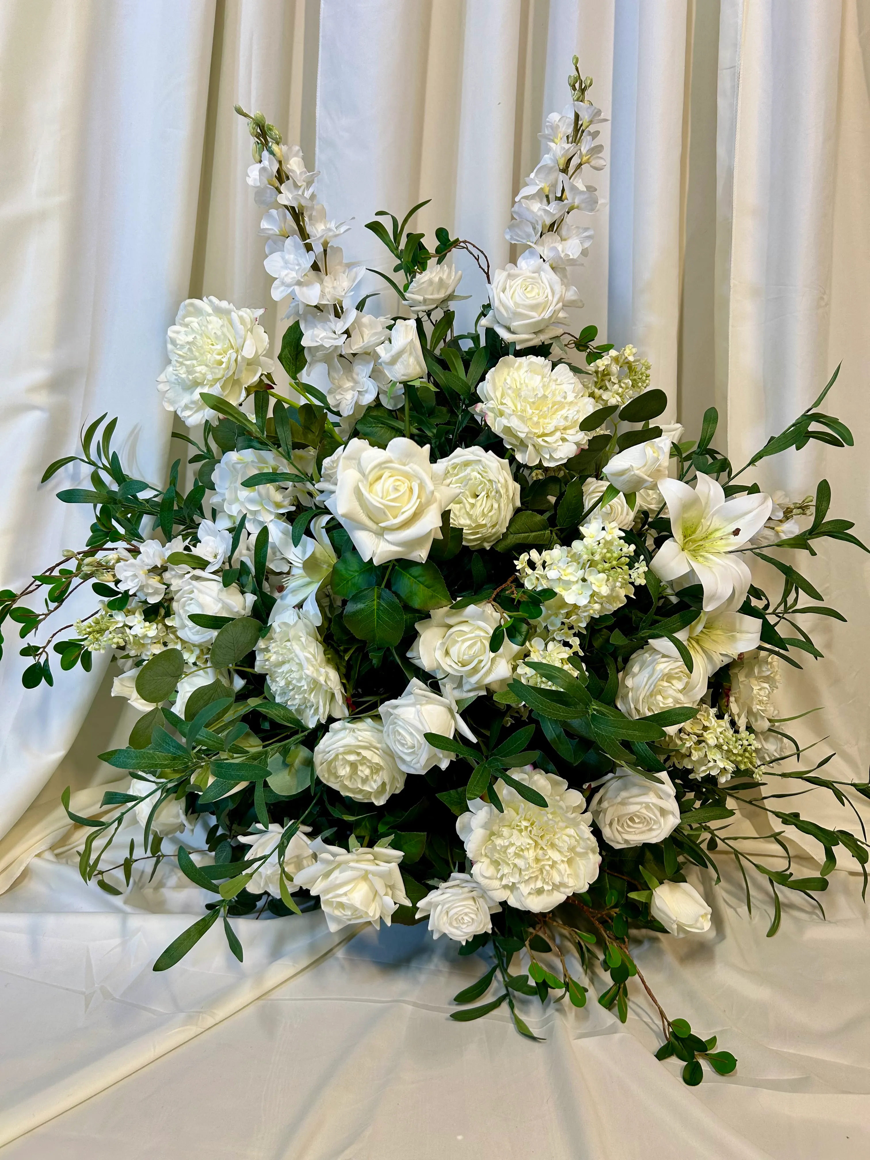 • Optional Hybrid Upgrades – Fresh greenery and/or select fresh blooms can be added for a stunning life-like look at a fraction of the cost of all fresh.