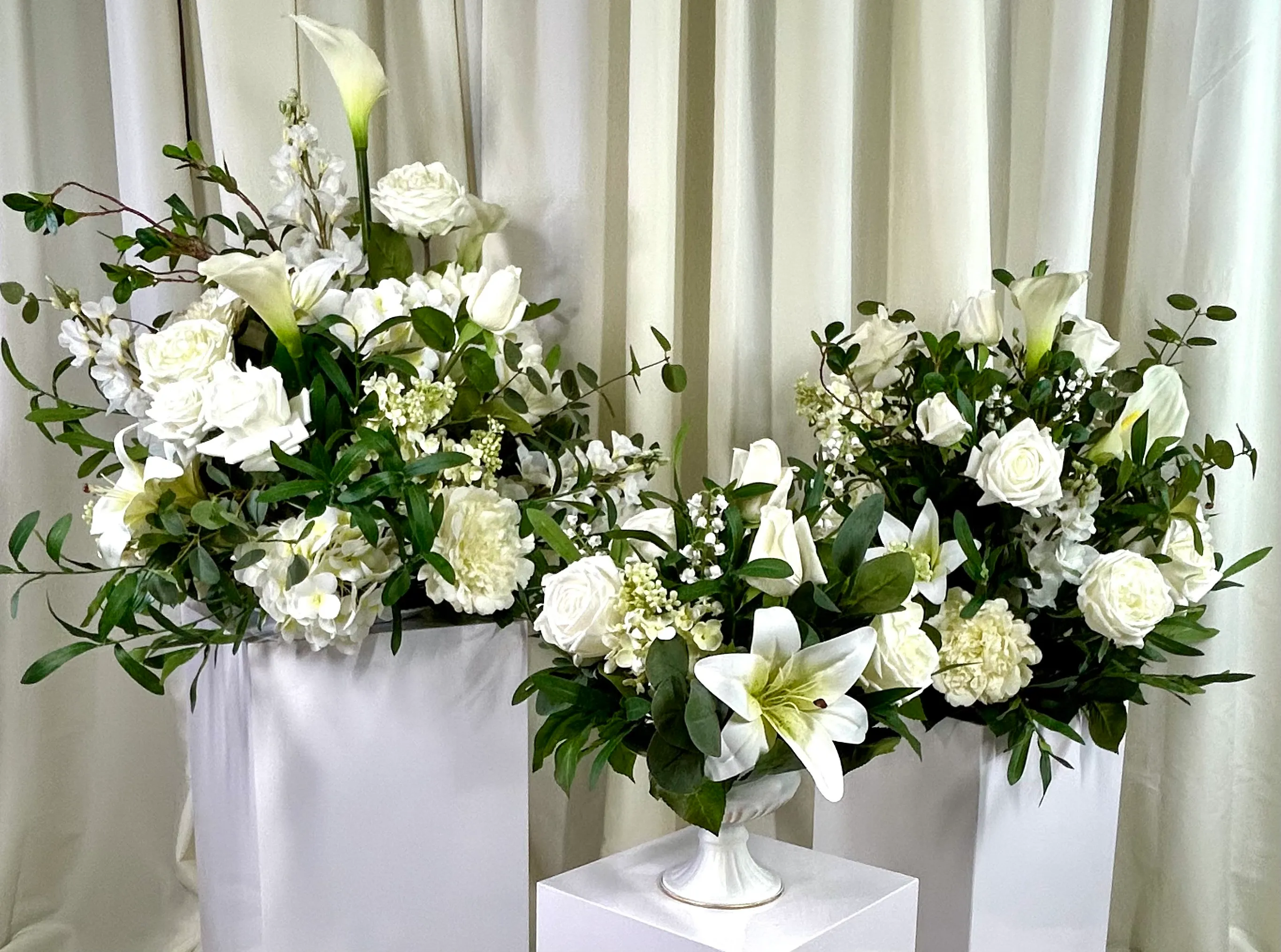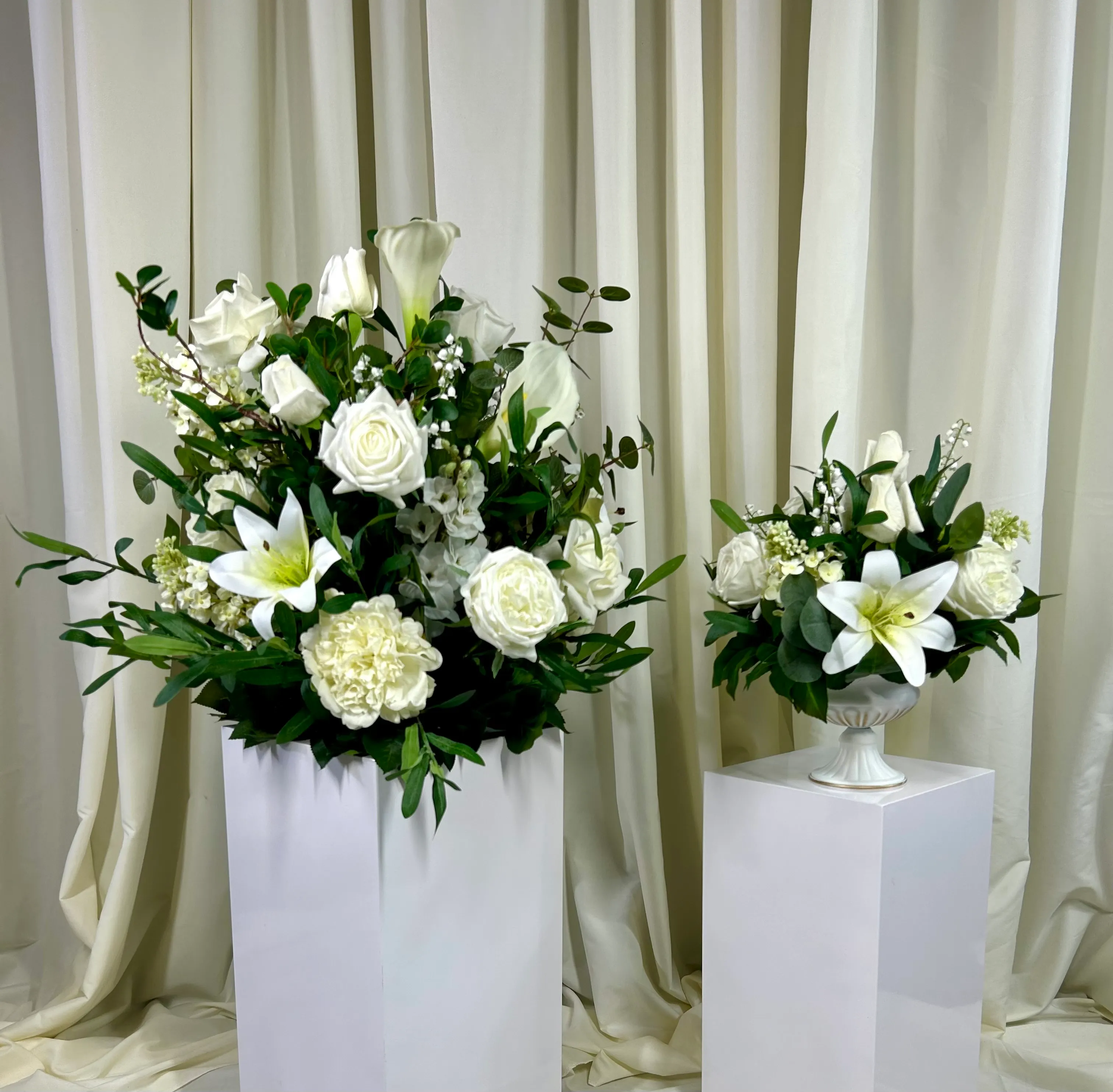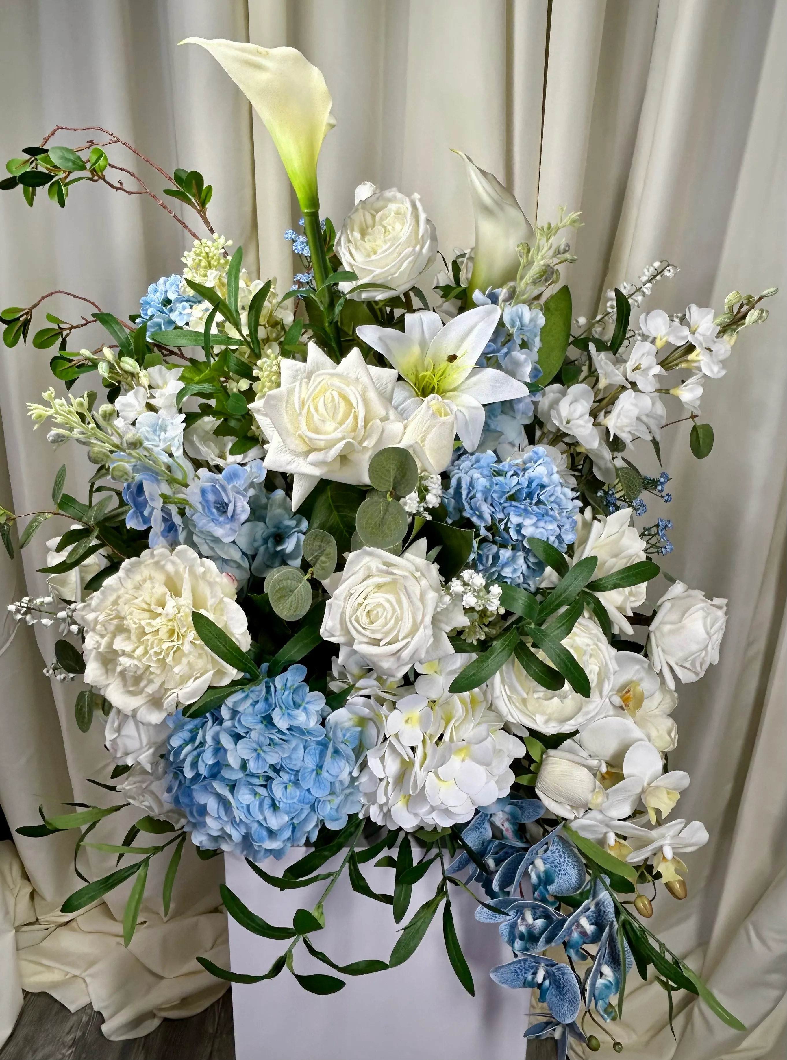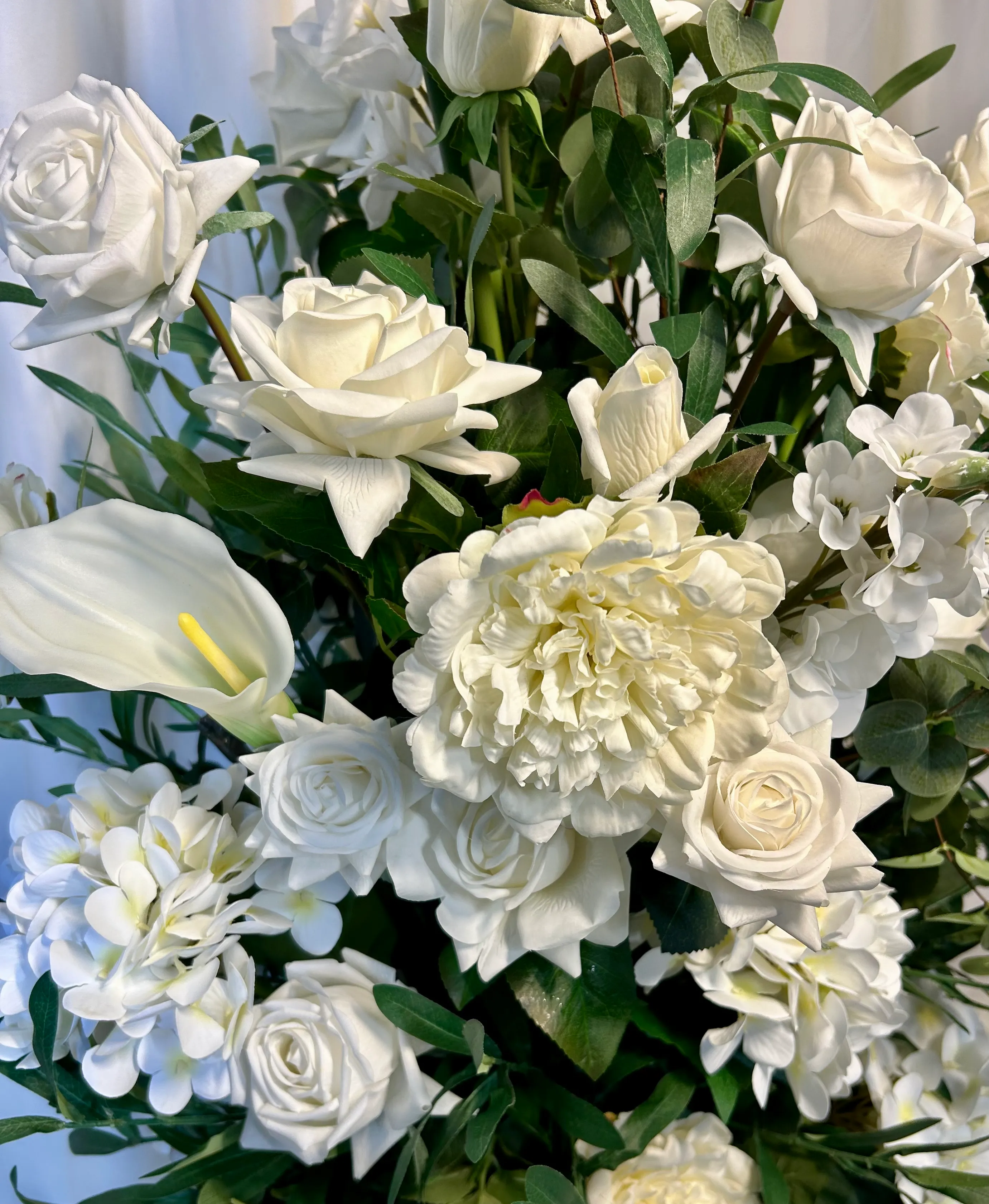 • Optional Hybrid Upgrades – Fresh greenery and/or select fresh blooms can be added for a stunning life-like look at a fraction of the cost of all fresh.